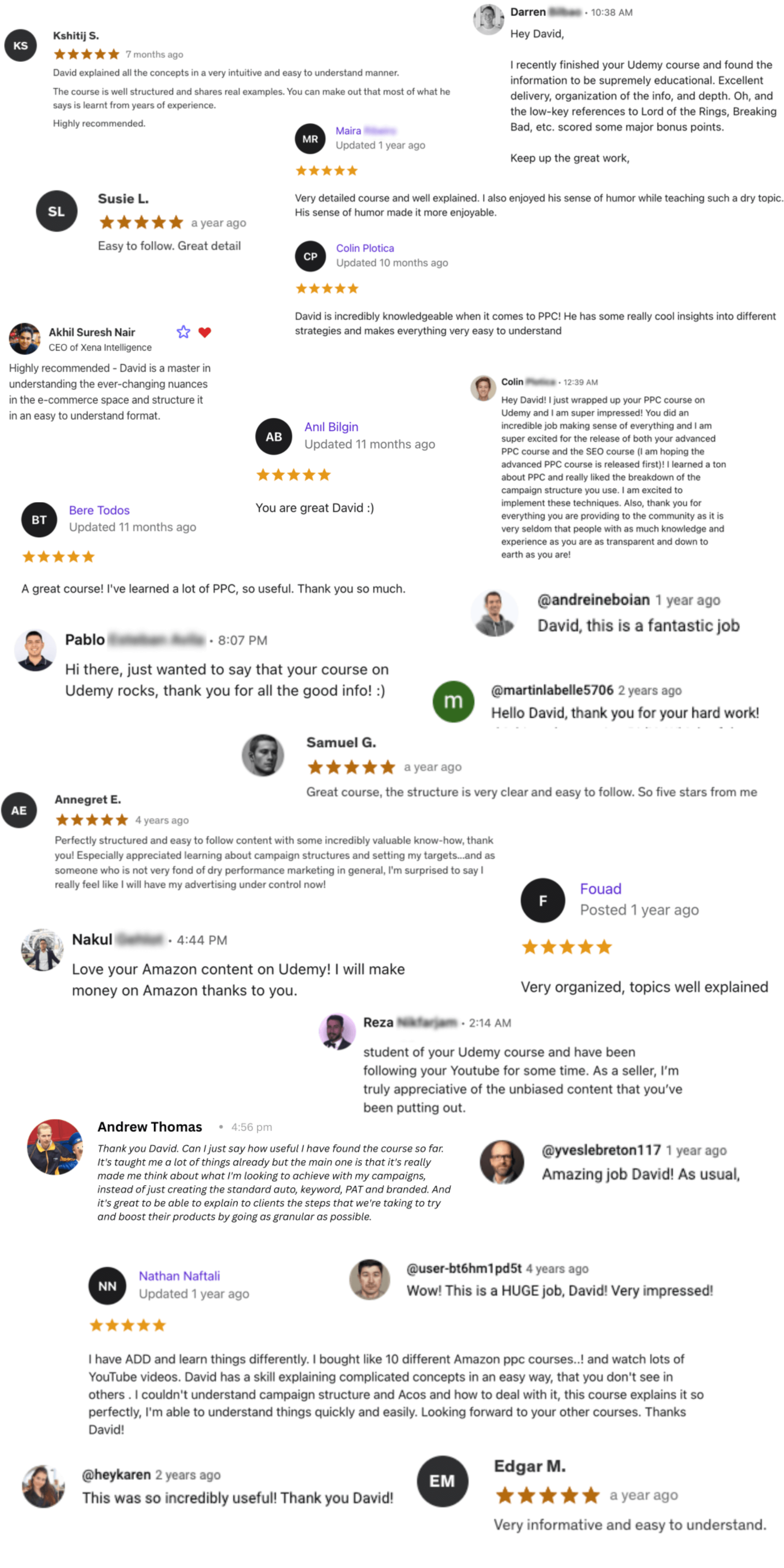 Feedback from other brand owners, including for my initial 'Amazon Ads Fundamentals' course.